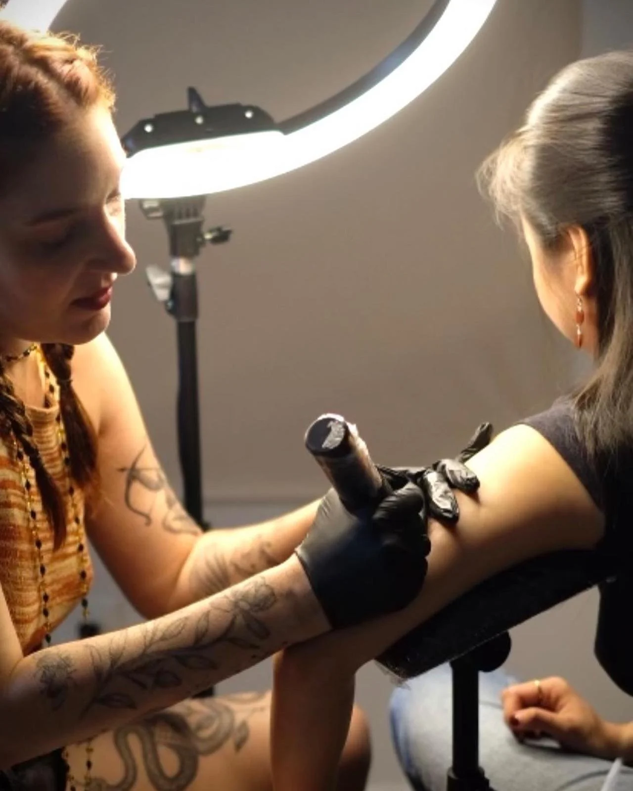 In recent years, Ana has expanded her creative practice into tattooing, approaching it as a sacred and intentional form of healing that integrates mind, body, and spirit. She views tattooing as a ritual of self-authorship — a moment of embodiment where symbolism, memory, and transformation are permanently inscribed onto the skin. Through this integrative approach, Ana bridges art therapy, expressive arts, and tattoo practice, offering holistic experiences that support healing, self-connection, and personal meaning.